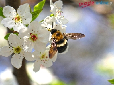 Puzzle Wiśni, Białe, Kwiaty, Pszczoła