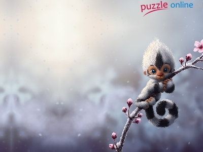 Puzzle Wiśnia, Gałązka, Kwiaty, Stworek