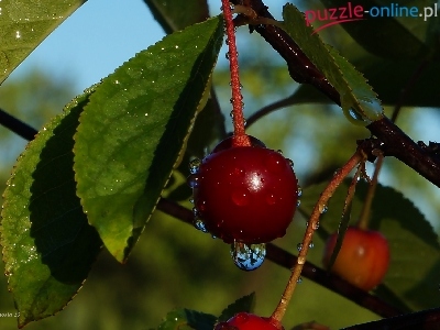 Wiśnia, Gałązki, Liście, Drzewo, Owoc, Krople