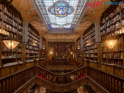 Witraż, Lampy, Regały, Porto, Księgarnia Lello, Książki, Portugalia, Wnętrze
