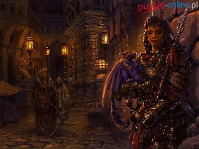 Dziewczyna, Włócznia, Uliczka, Zbroja, Fantasy, Wojowniczka, Smok