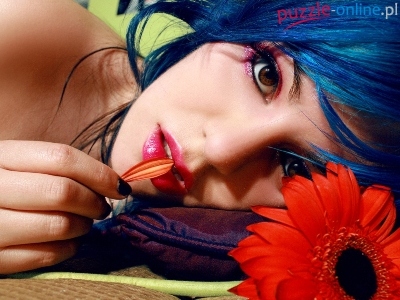 Puzzle Włosy, Twarz, Niebieskie, Kwiat