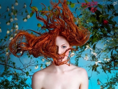 Puzzle Włosy, Kobieta, Rozwiane, Drzewa