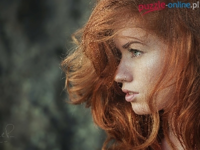 Włosy, Kolczyk, Kobieta, Rude, Profil