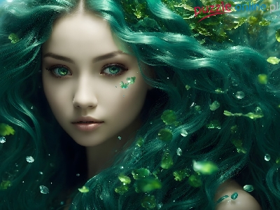 Grafika, Zielonooka, Kobieta, Włosy, Fantasy, Zielone