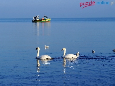 Woda, Ptaki, Rybacki, Białe, Łabędzie, Kuter