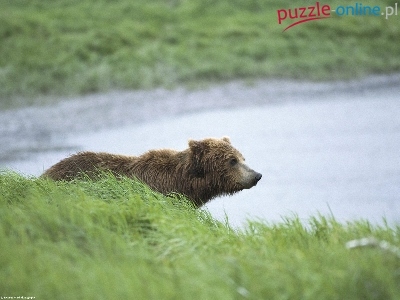 Puzzle woda, Niedźwiedź, brunatny, trawa