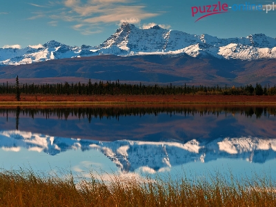 Puzzle Woda, Góry, Drzewa, Odbicie