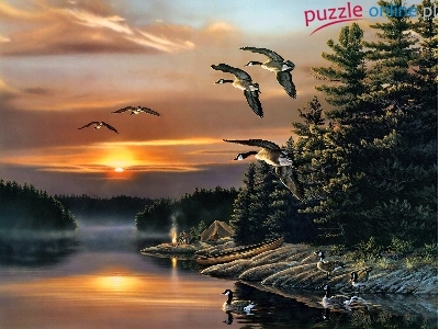 Puzzle Woda, Gęsi, Kanadyjskie, Las
