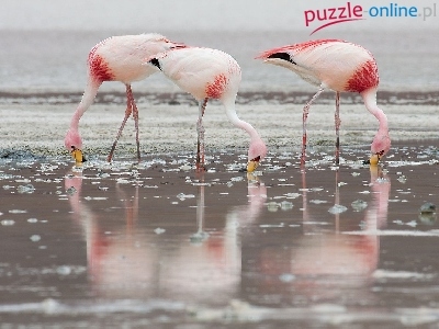 Puzzle Woda, Pochylone, Flamingi Krótkodziobe, Odbicie