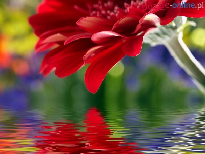 Puzzle Woda, Czerwony, Kwiat, Odbicie
