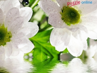 Puzzle Woda, Białe, Kwiaty, Odbicie