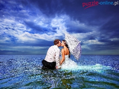 Puzzle Woda, Kobieta, Mężczyzna, Parasol