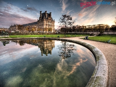 Woda, Luwr, Odbicie, Paryż, Muzeum, Fontanna