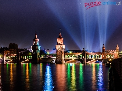 Puzzle Wodą, Miasto, Nad, Iluminacje
