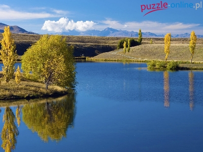 Puzzle Woda, Jezioro, Niebieska, Drzewa