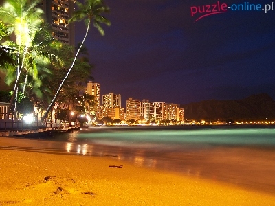 Woda, Hawaje, Wieżowce, Waikiki, Piasek, Palmy