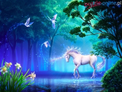 Puzzle Woda, Jednorożec, Ptaki, Drzewa