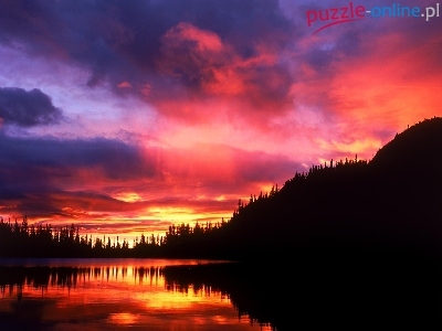 Słońca, Woda, Góra, Chmury, Zachód, Niebo, Las