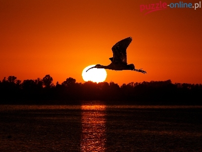 Woda, Ptak, Zachód, Słońca, Lecący