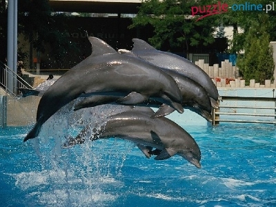 Puzzle woda, Delfiny, stado, basen