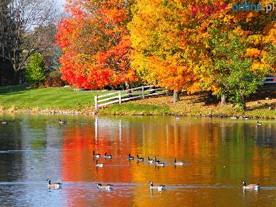 Woda, Drzewa, Trawa, Kaczki