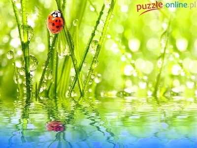 Puzzle Woda, Biedronka, Trawy, Bokeh