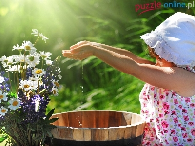 Puzzle Woda, Dziewczynka, Wiadro, Kwiatki