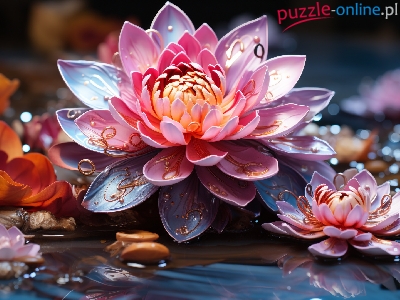 Puzzle 2D, Różowe, Lilie wodne