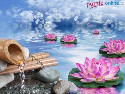 Puzzle Wodne, Różowe, Lilie, Art