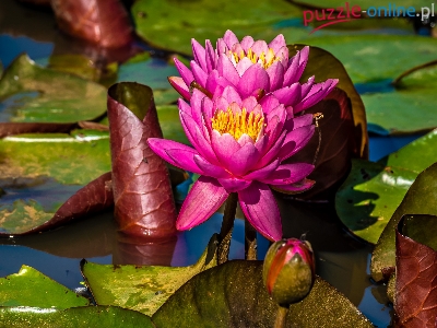 Puzzle Lilie wodne, Różowe, Różowe, Liście