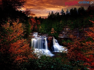 Puzzle Wodospad, Las, Jesień, Wieczór