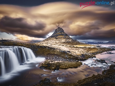 Puzzle Wodospad Kirkjufellsfoss, Islandia, Góra Kirkjufell, Kamienie