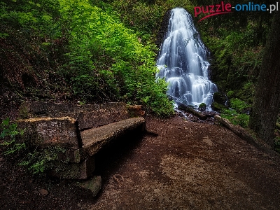Puzzle Ścieżka, Las, Wodospad, Ławka