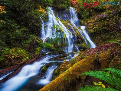 Skały, Liście, Paproć, Las, Roślinność, Strumień, Jesień, Wodospad