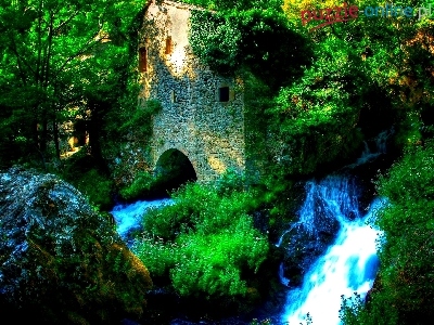 Przepiękny Wodospad, Drzewa Zielony, Las Słońca, Zachód, Ruiny Skała, Wodospad Na, Ruiny, Pustyni Wiśni, Kwiat, Kanał