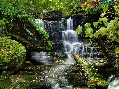 Wodospad, Krzewy, Las, Rzeczka, Drzewa