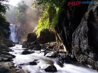Puzzle Wodospad, Skały, Rzeczka, Drzewa
