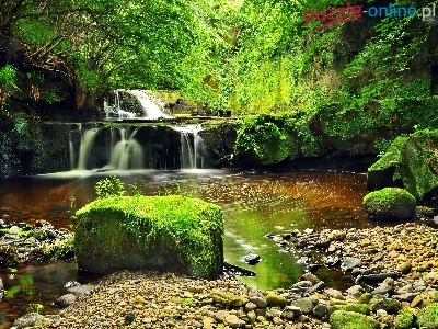 Wodospad, Mchy, Las, Rzeka, Kamienie
