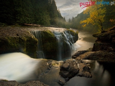 Puzzle Wodospad, Lasy, Rzeka, Skała