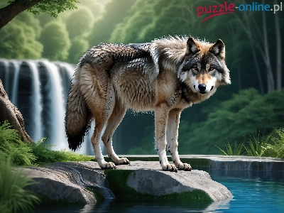 Wilk, Wodospad, Skała, Grafika, Las