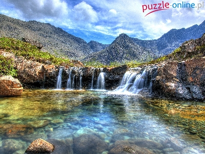 Wodospad, Kamienie, Góry, Skały, Rzeczka