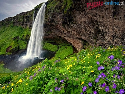 Puzzle Skały, Wodospad, Kwiatki