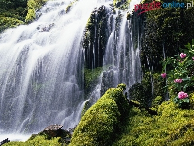 Skały, Wodospad, Mech