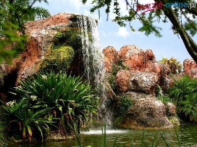 Puzzle Skały, Wodospad, Rośliny
