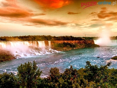 Puzzle Zachód, Wodospad, Słońca