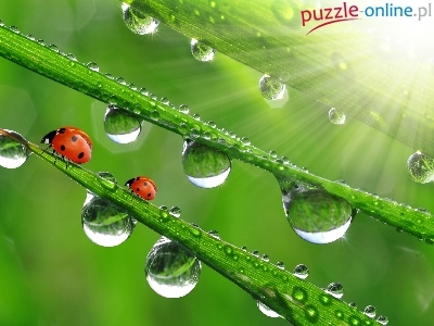 Wody, Biedronki, Trawy, Dwie, Krople, Źdźbła
