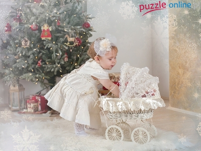 Wózek, Święta, Mała, Dziewczynka, Choinka