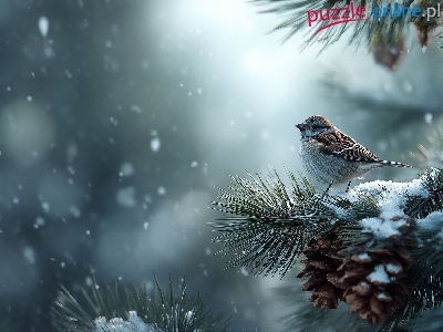Puzzle Szyszki, Wróbel, Sosna, Grafika AI