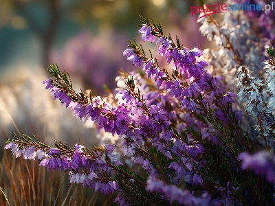Puzzle Kwiaty, Wrzośce, Różowe, Grafika AI